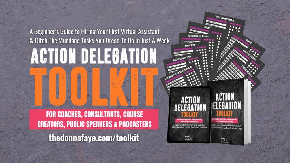 Don’t worry, that’s why we created “The Action Delegation Toolkit: A Beginner’s Guide To Hiring Your First Virtual Assistant and Ditch What You Hate To Do”
